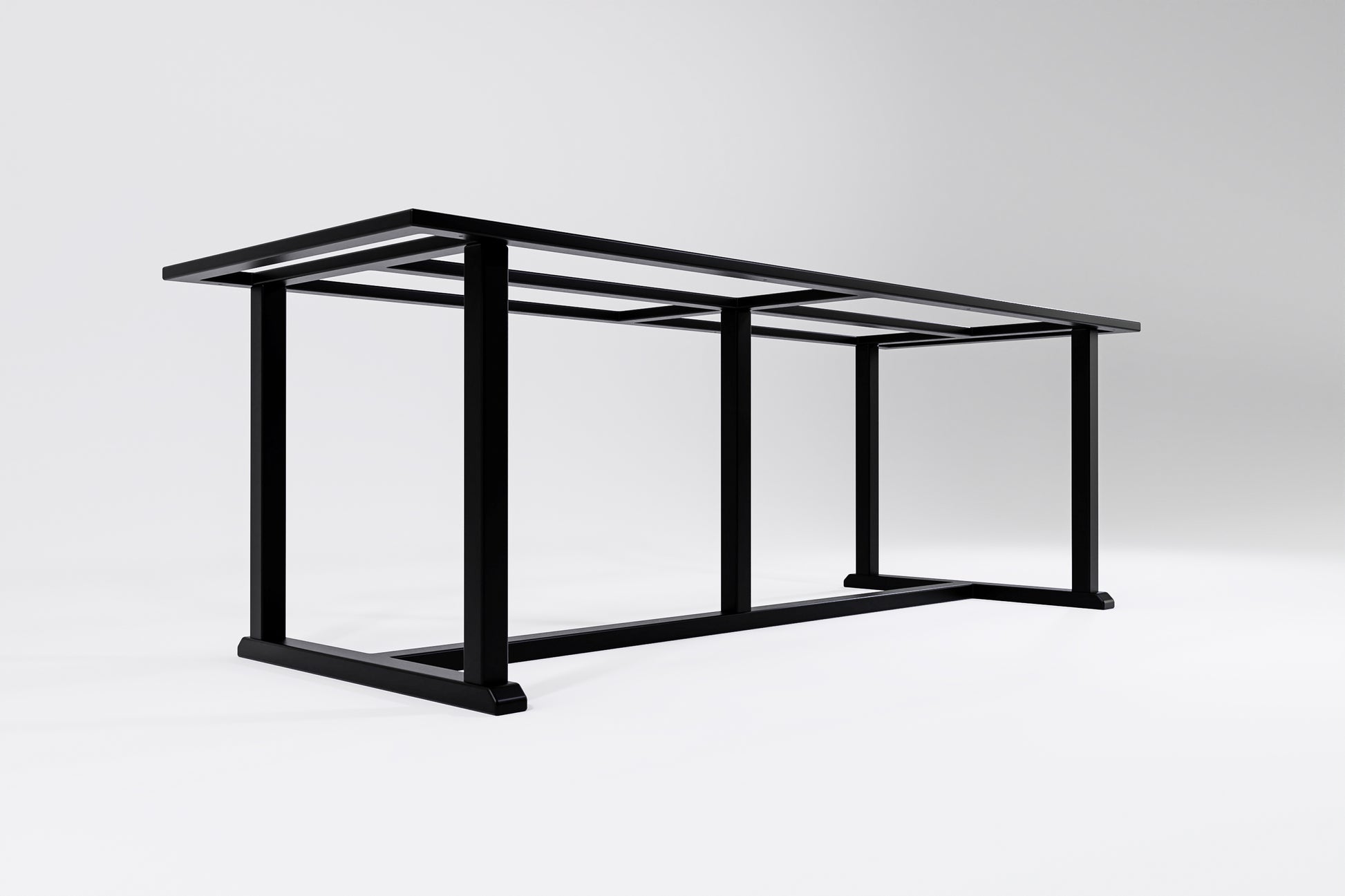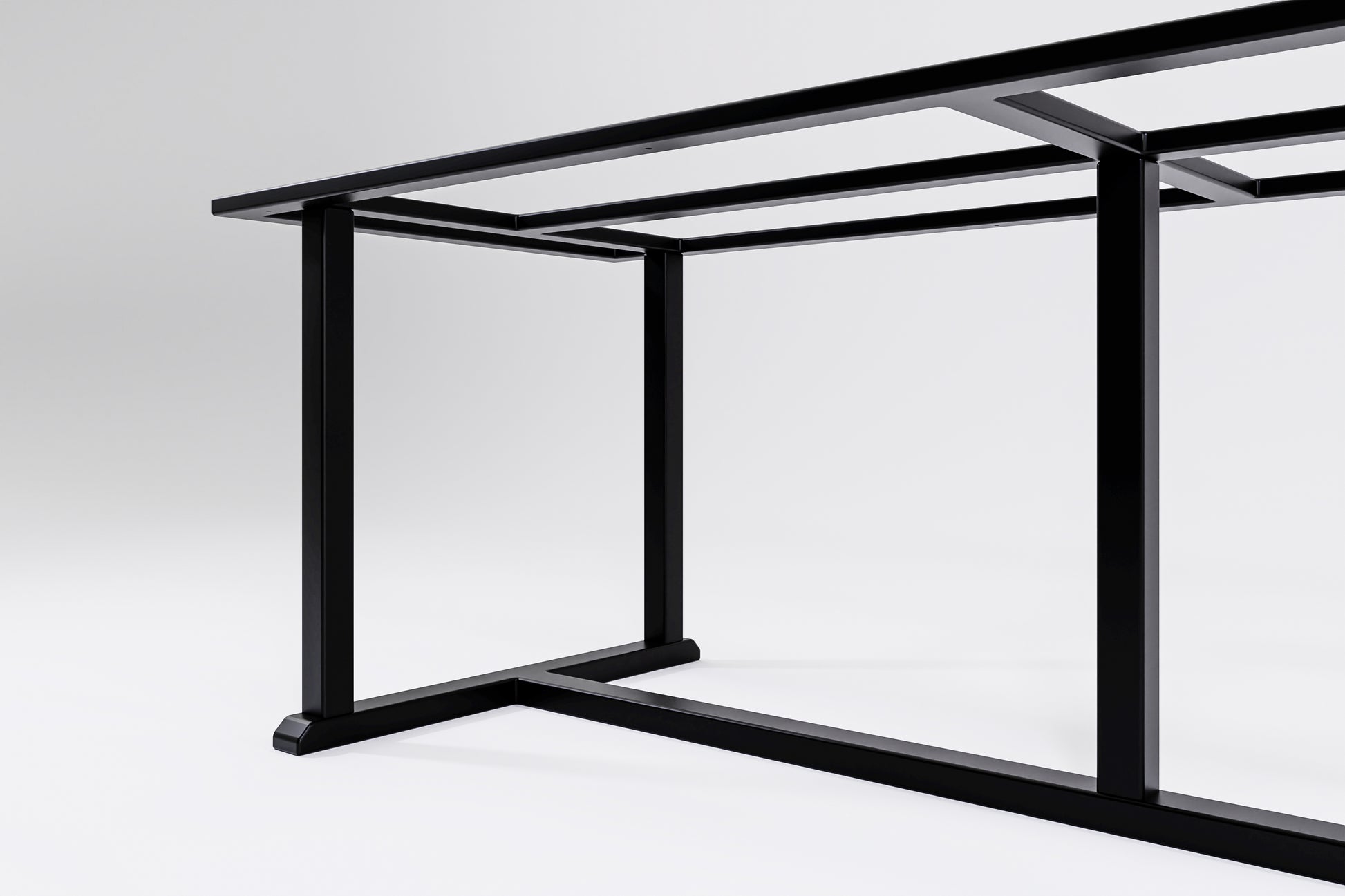 The Ava table base is designed for high durability and style. This frame provides exceptional support for a variety of worktop materials, including stone, wood and glass. The subtle beveled detail at the bottom of each foot adds a refined touch to the otherwise bold and industrial design. This small but significant feature not only enhances the aesthetic appeal but also provides a smooth transition between the base and the floor.