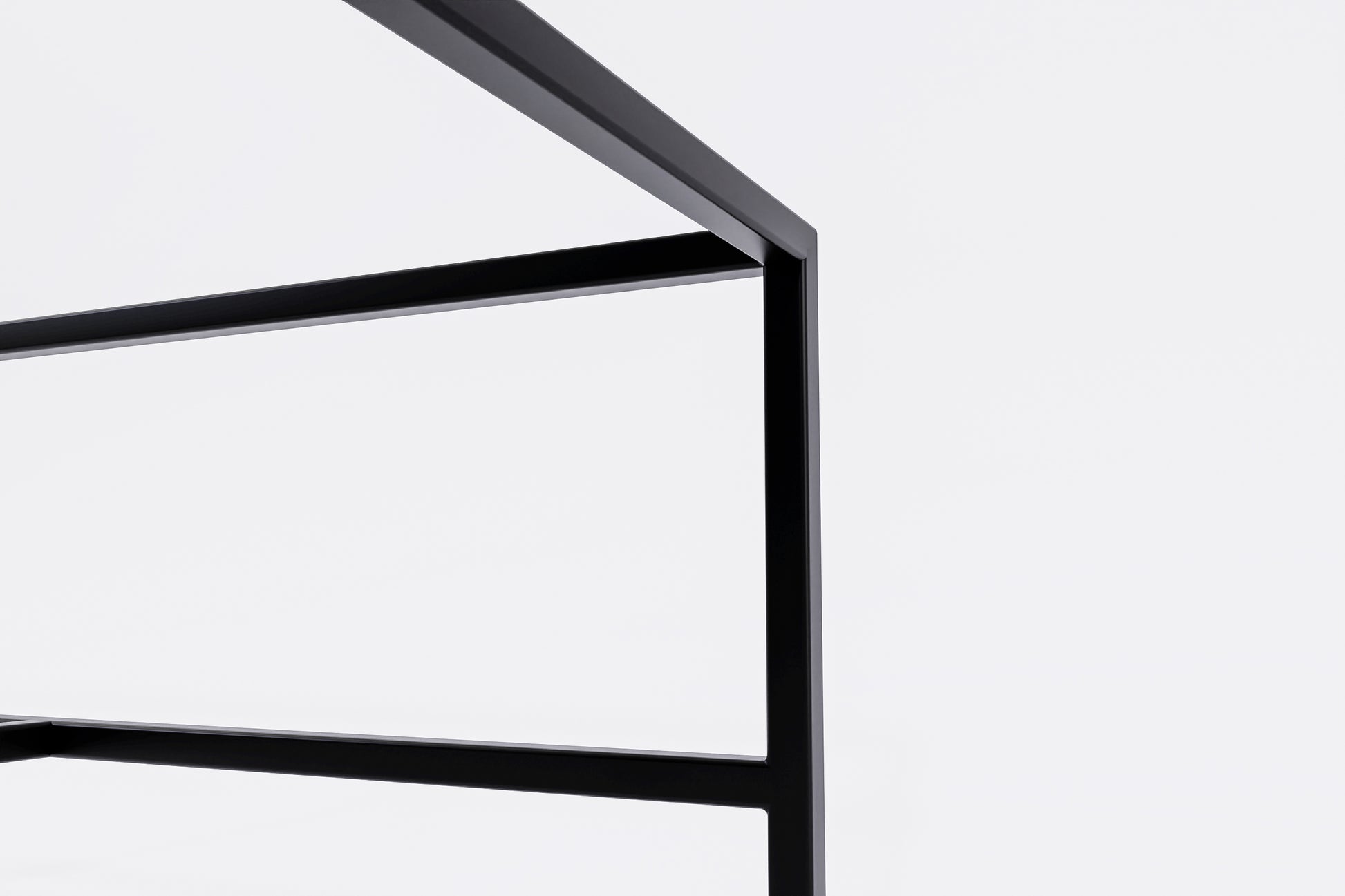 - Semi-matte black powder coat. RAL number 9005. A smooth, uniform finish. Protects against rust.