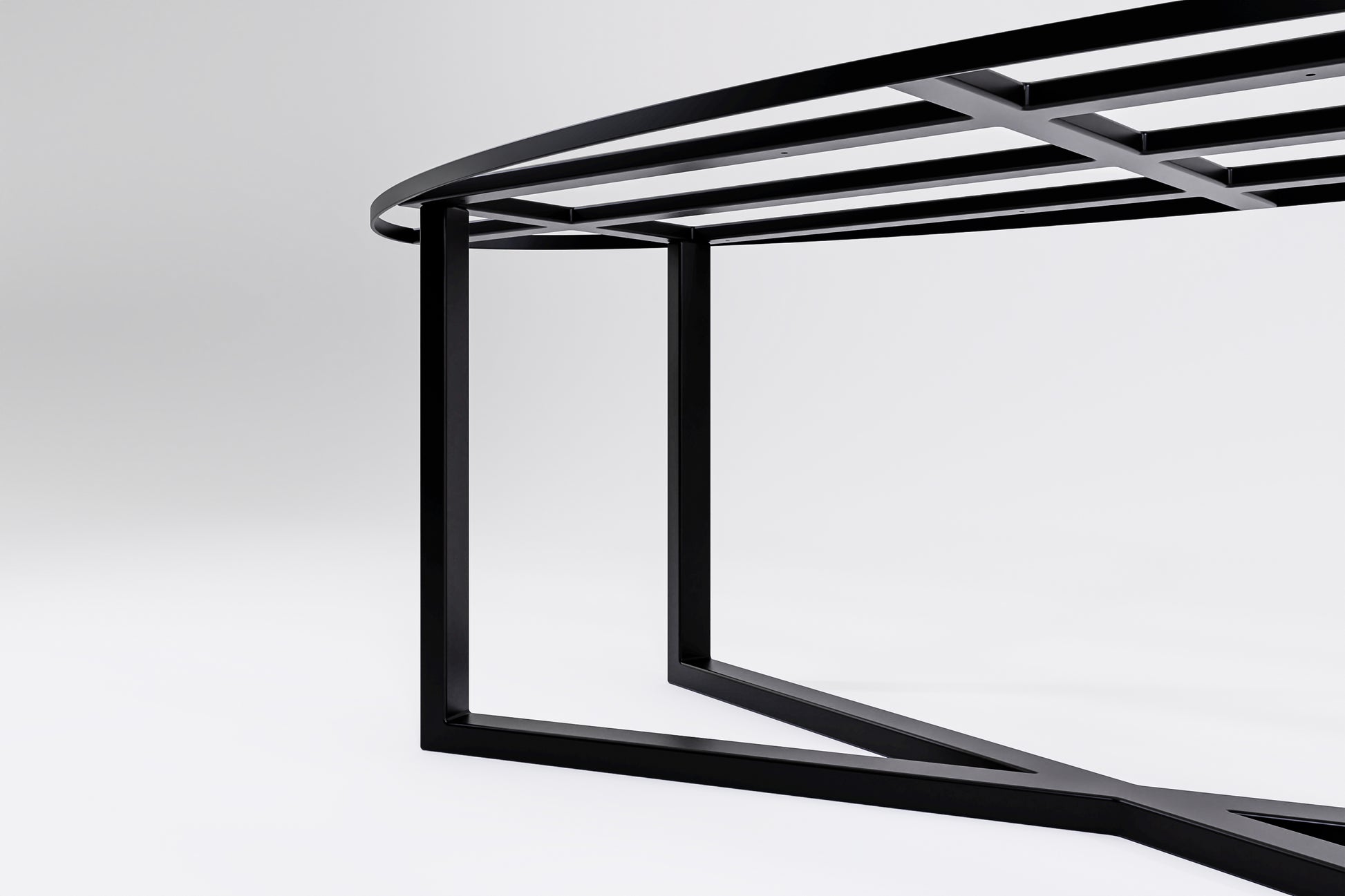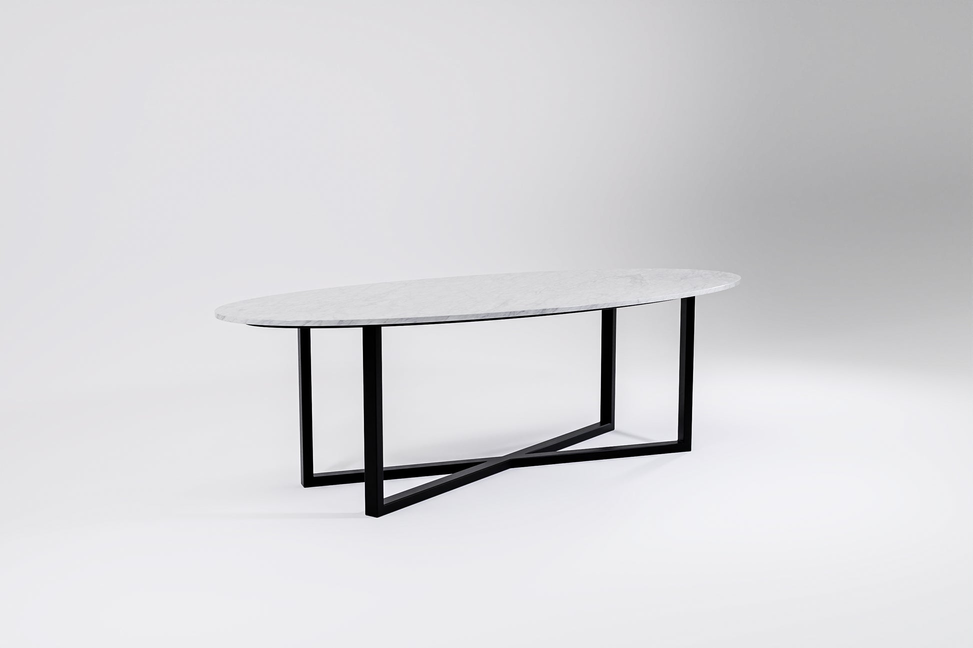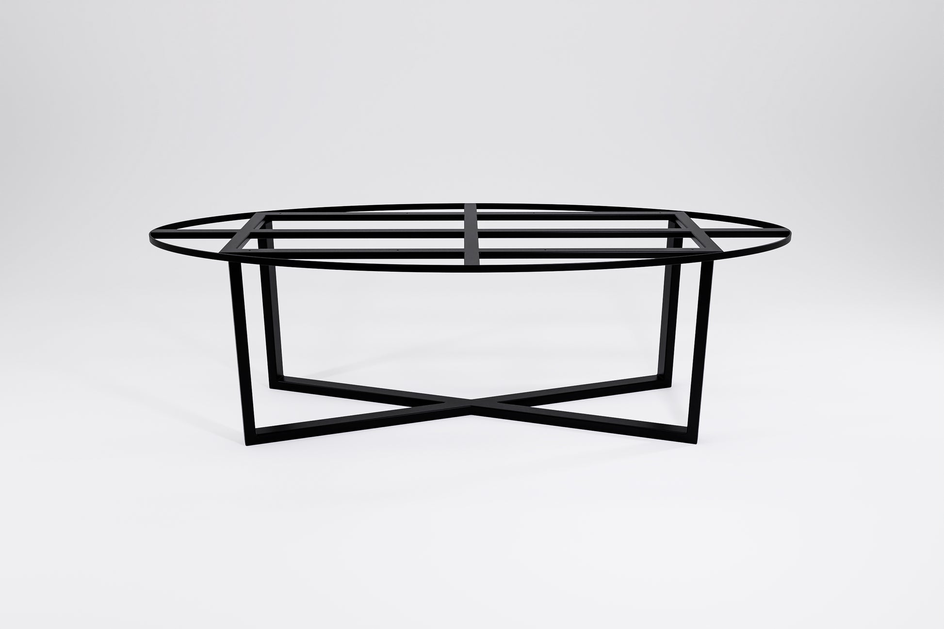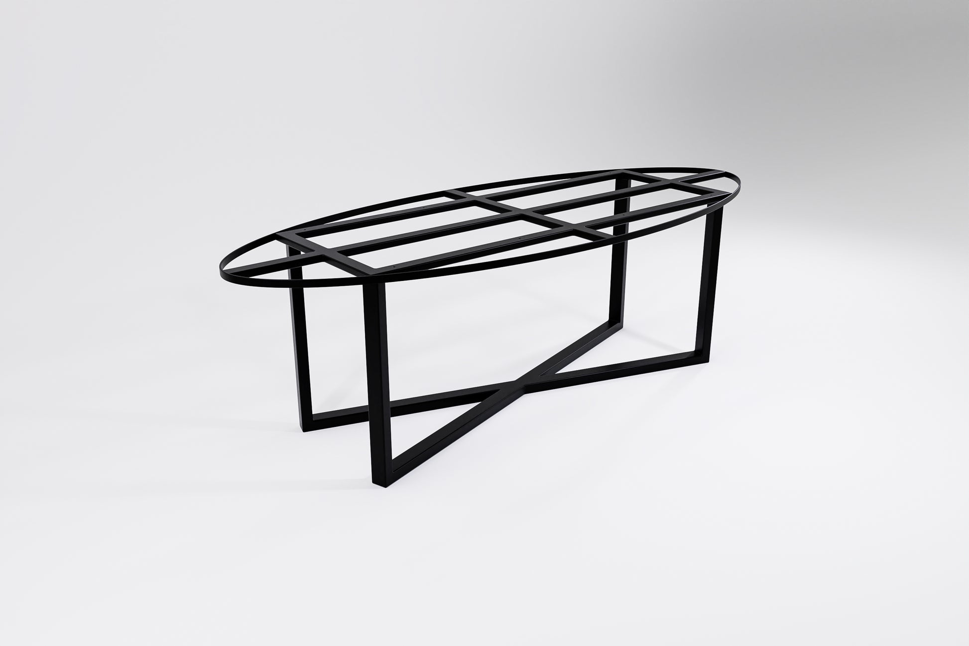 We engineered the Ezra oval metal table base to be compatible with oval-shaped marble, granite, and Quartz table tops. This design entails fully welded joints for maximum rigidity, requiring no assembly process on delivery.