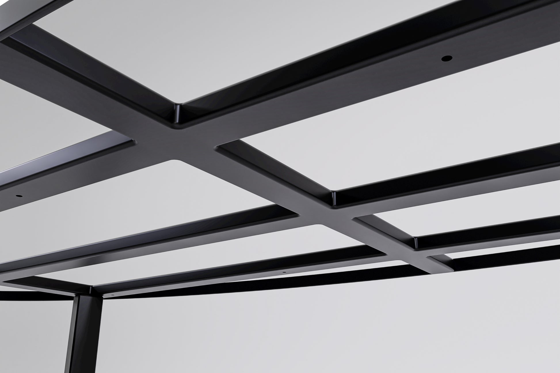 - Semi-matte black powder coat. RAL number 9005. A smooth, uniform finish. Protects against rust.