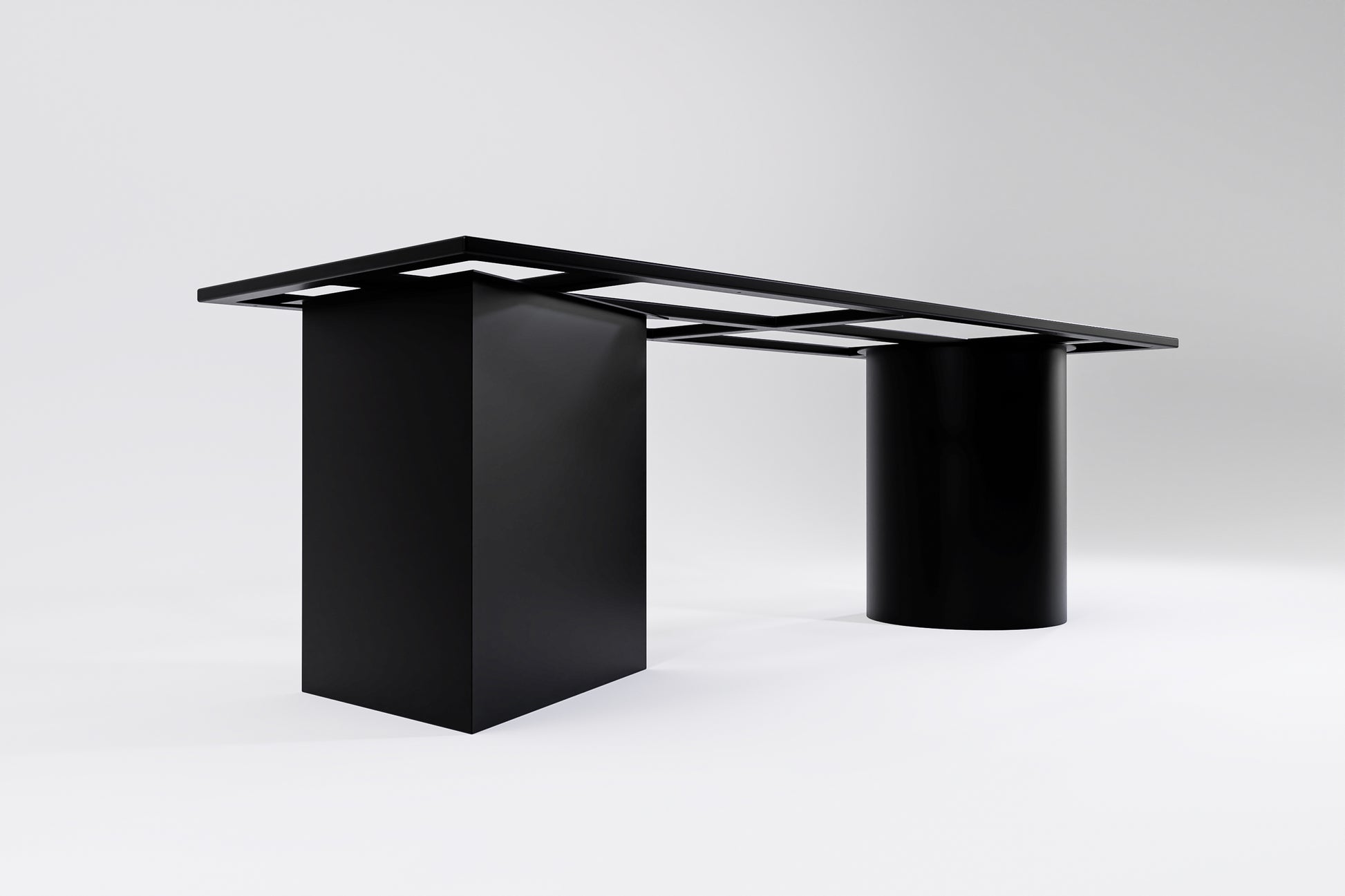 Our Farrell & Hera heavy-duty table base is carefully crafted from CNC-cut steel sheet, the pieces are then welded and blended to form two stunning tapering column legs.