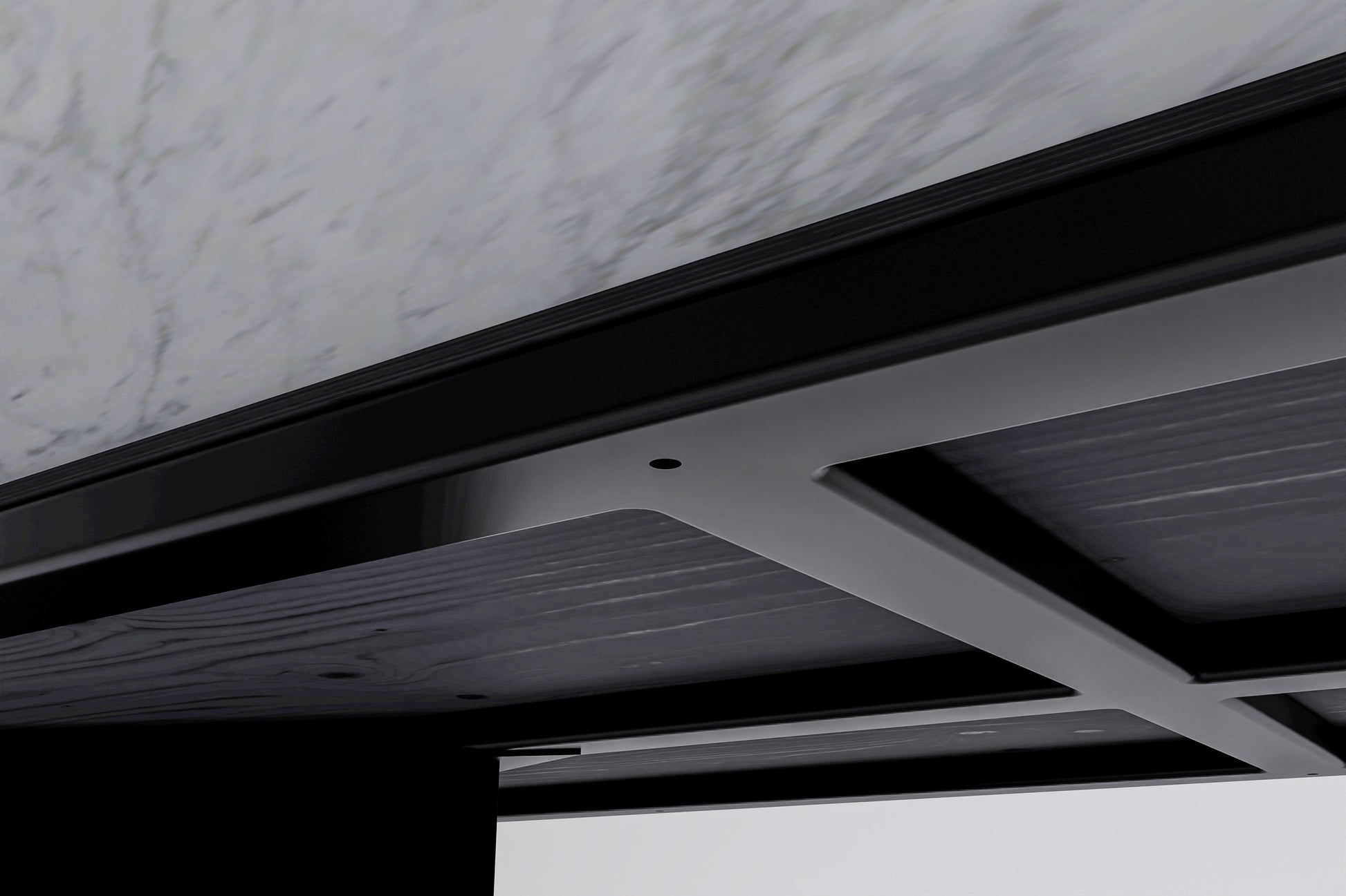 - Semi-matte black powder coat. RAL number 9005. A smooth, uniform finish. Protects against rust.