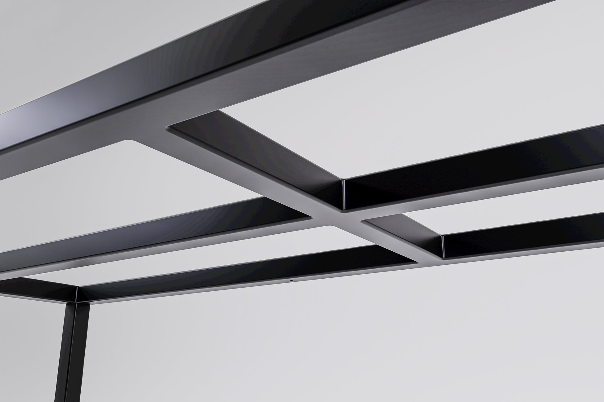 - Semi-matte black powder coat. RAL number 9005. A smooth, uniform finish. Protects against rust.