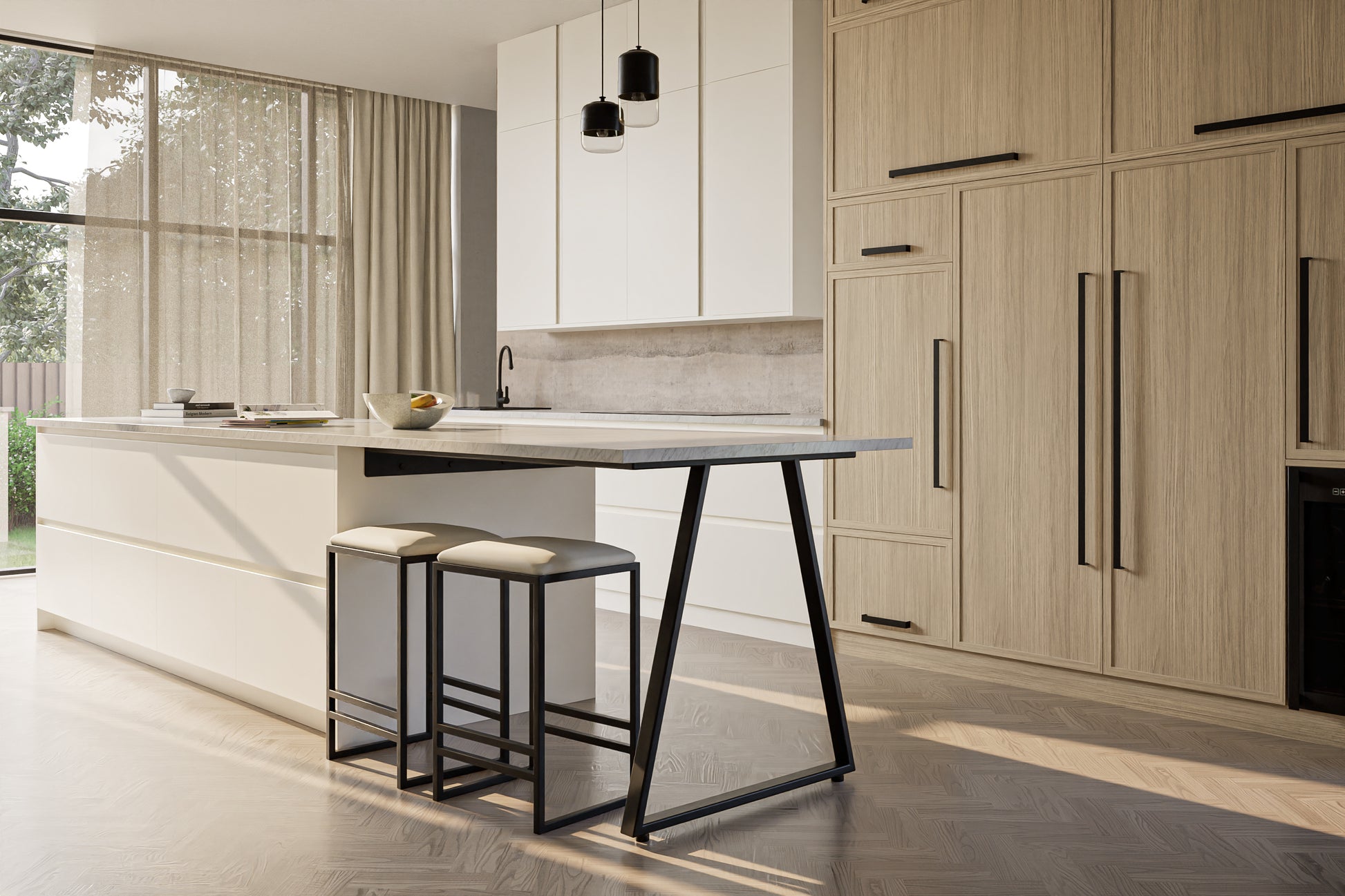 Our kitchen island frames come standard with adjustable heavy-duty feet, allowing the height to range from 86 cm to 88 cm.