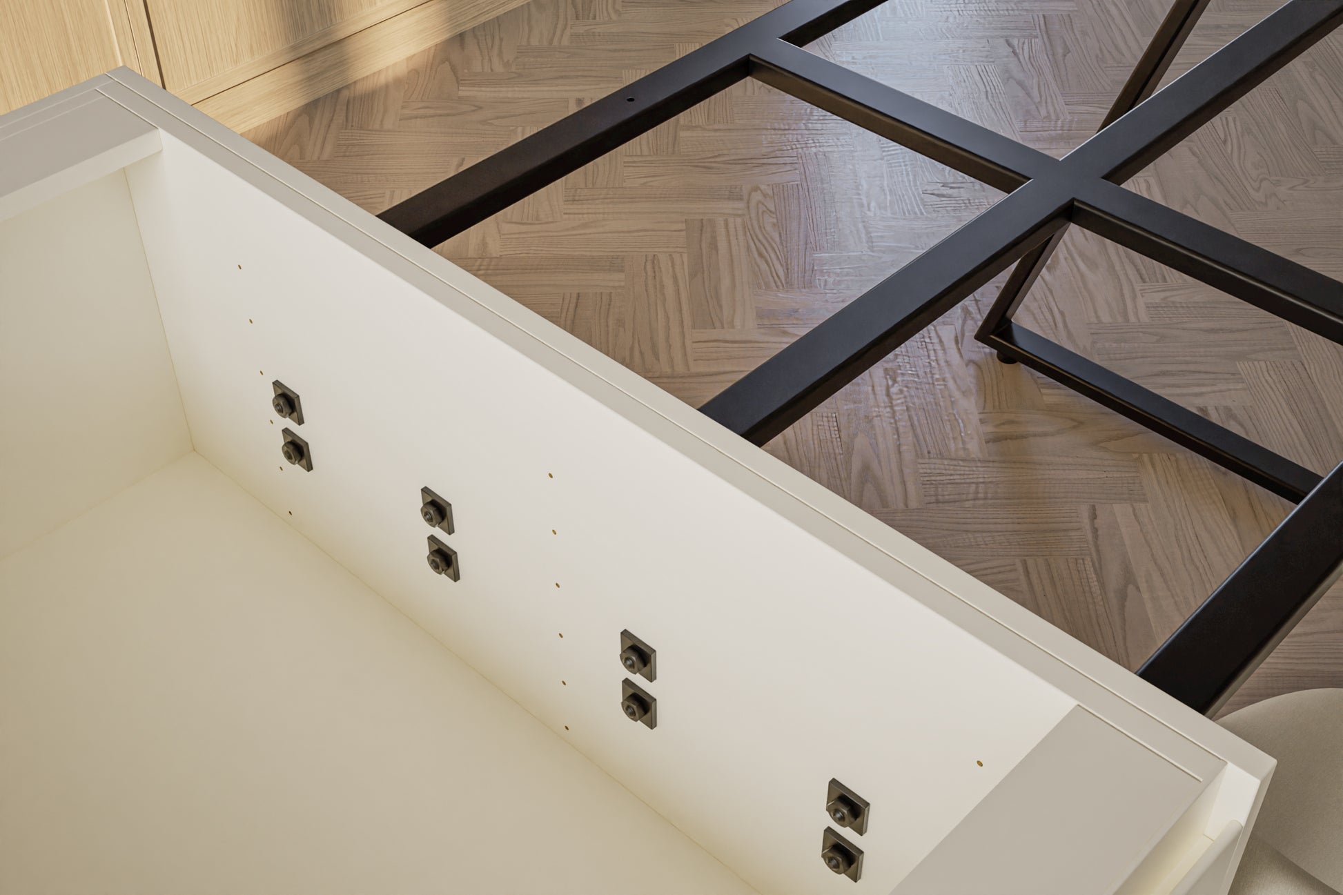 Please note, due to the position of the washers and nuts, the internal drawer runners could be obstructed, please take this into account when designing your kitchen island.