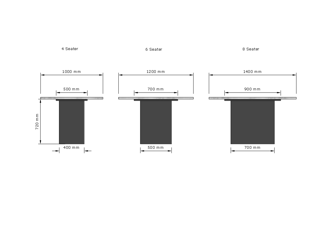 Example: If your tabletop is 200 cm in length, we recommend a minimum base length of 140 cm.