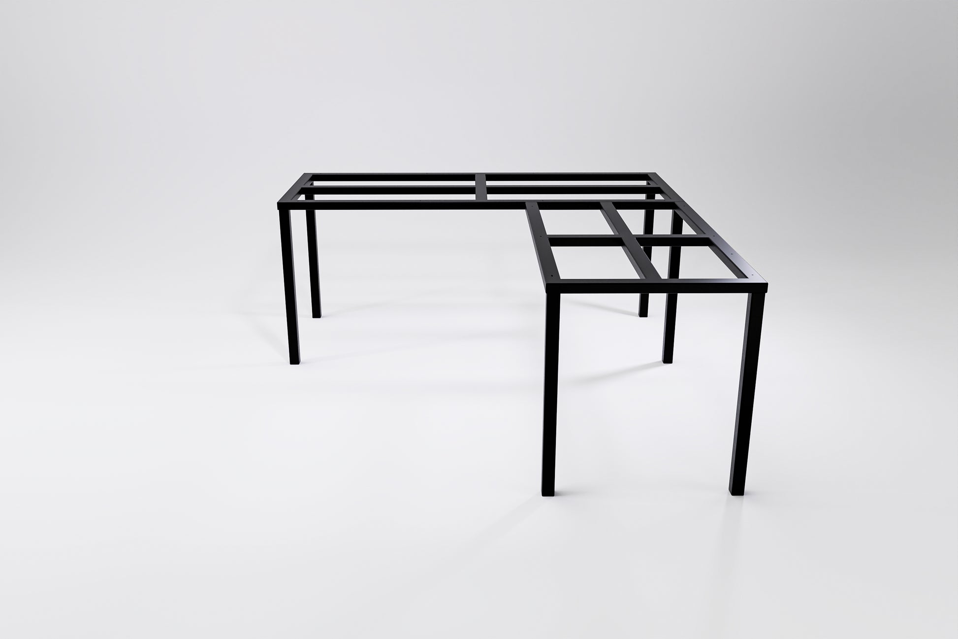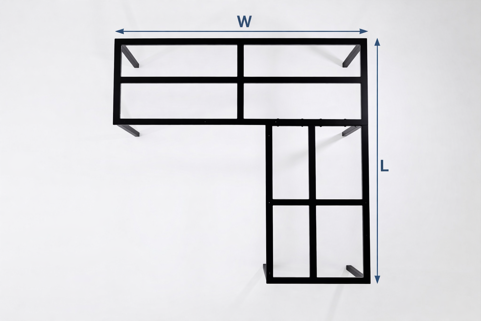 The June L-shaped counter-height table frame is a heavy-duty design with a weight-bearing capacity of 500 kg. The Ideal table solution for offices, restaurants, and co-working spaces.
